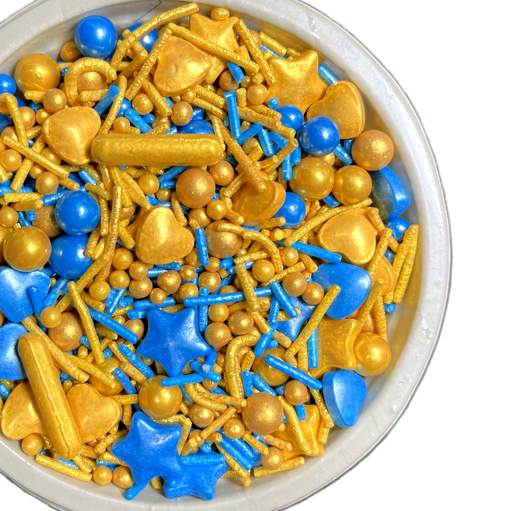 Add a touch of luxury to your baking with Blue & Golden Mixture of Sprinkles from HSJ Industries. These Sprinkles Mixtures are perfect for decorating cakes, cupcakes, and other treats. Pair them with our Rainbow Sugar Balls for Cake Decoration by HSJ Industries – Kemry to add color and sparkle to any celebration. Ideal for festive occasions, birthdays, or special events.