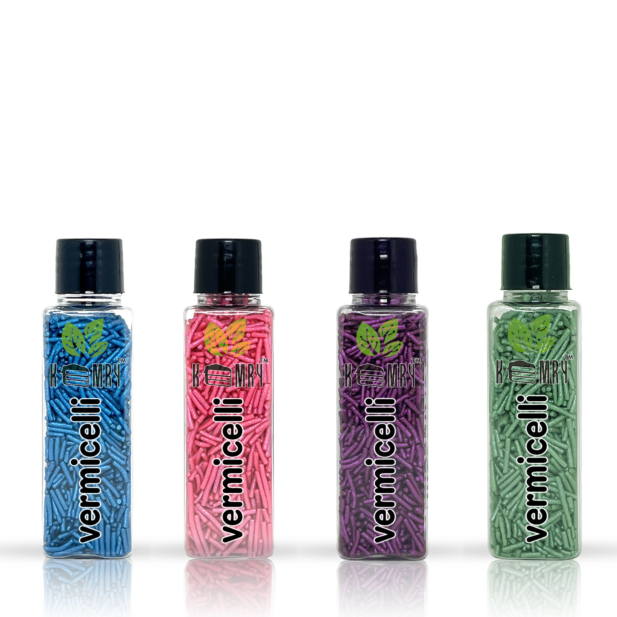 Kemry’s Premium Vermicelli sprinkles – Pack of 4 ( Royal Blue, Pinkish , Purple , D-Green ) are a delightful addition to any sweet creation, bringing vibrant colors and a touch of sparkle to a variety of treats. These versatile sprinkles are perfect for adding a fun, decorative flair to cakes, cupcakes, and cookies, making them irresistible to both the eyes and taste buds. Sugar Gems are particularly popular with children, who love their playful appearance and sweet taste. Whether punched into cookie dough, used as a garnish for ice cream, or mixed into chocolates, these sprinkles elevate desserts to a new level of creativity and enjoyment. They can also be sprinkled on doughnuts and other sweet delights, adding a festive touch to any occasion. Kemry’s Sugar Gems sprinkles are a must-have for anyone looking to make their confections stand out and bring joy to both young and old alike.