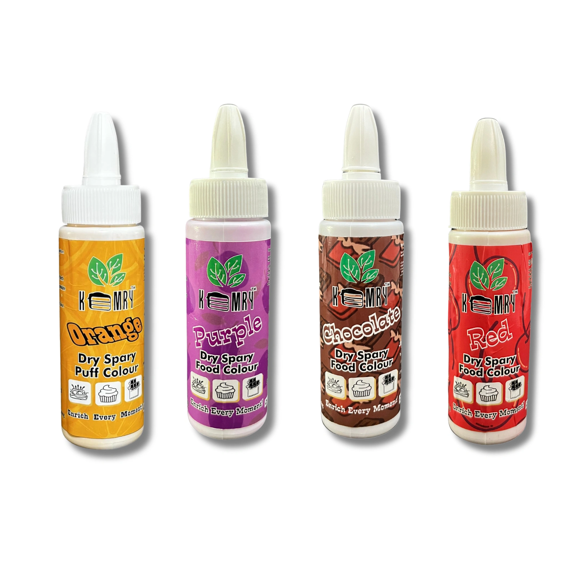 Kemry Edible Dry Puff Food Colour (Orange, Purple, Chocolate, Red) offers versatile application across cakes, cupcakes, cookies, doughnuts, ice cream, candies, and sweet decorations. With vibrant and long-lasting colors, it ensures visually appealing treats. Its professional-grade formulation guarantees consistent performance and easy integration into recipes, allowing for precise application and intricate designs. ( Per Bottle Weight 60gm ).