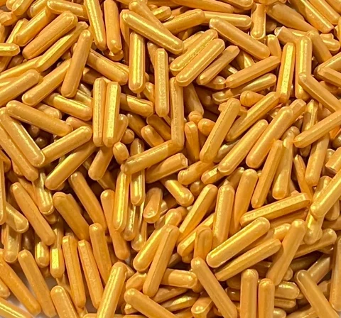 Kemry produces Sugar sprinkles in sleek Rod shapes Golden, perfect for adding a modern and stylish touch to various confections. These rod-shaped sprinkles are ideal for decorating cakes, cupcakes, ice cream, chocolates, doughnuts, and other sweet treats, making them suitable for any occasion. Their elongated form and vibrant colors provide a unique texture and visual appeal, enhancing the overall presentation of your desserts. With Kemry’s Rod-shaped sprinkles, your creations will stand out, offering both a delightful taste and a striking appearance.